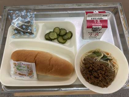 タンタンめん・きゅうりの甘酢づけ・ミニフィッシュ・コッペパン・