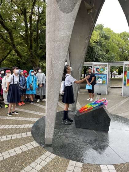 原爆の子の像の前に、千羽鶴供えました。