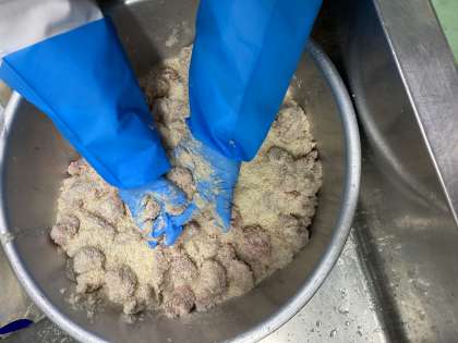 今日の給食では、給食室で手作りして揚げたカツに、八丁みそ、赤みそ、砂糖、みりん、水を合わせたみそだれをかけていただきました。