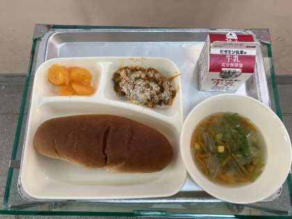 「グラタン」はフランスが発祥とされています。肉や魚介類、麺類や野菜などを下処理して、焼き皿に入れ、チーズやパン粉をふってオーブンで焼き色を付けた料理です。「グラタン」とは本来フランス語で、加熱によってできた薄い皮や焦げを示します。また、焦げ目ができた料理や焦げ目をつける調理法もグラタンといいます。今日の給食では、牛ひき肉、豚ひき肉、じゃがいもを主材にしたケチャップ味のグラタンが登場しました。