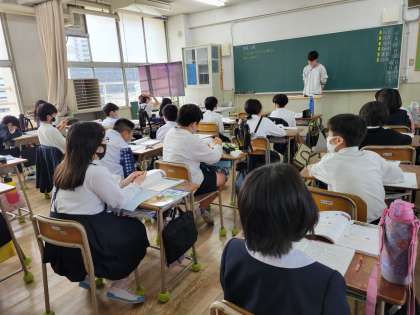 5時間目は全学級算数「整数と小数」の授業でした。1/10倍、1/100倍した時の小数点の移り方について学んでいました。