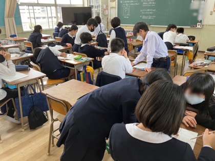 自分で考えた方法をとなりの友だちと比べて、さらに考えを深めています。