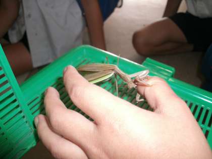 カマキリやトンボの体のつくりを観察しています