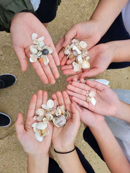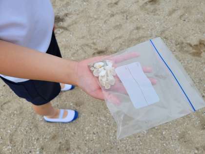 みんな、たくさん貝殻を拾っていて、お土産にするという人もいます。