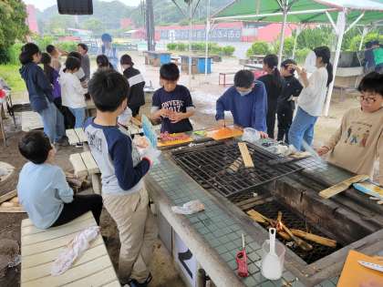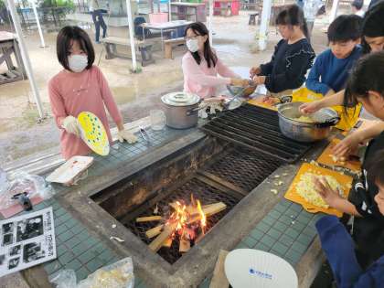 マキが湿っていてなかなか火が着かず各テーブル苦戦中です。