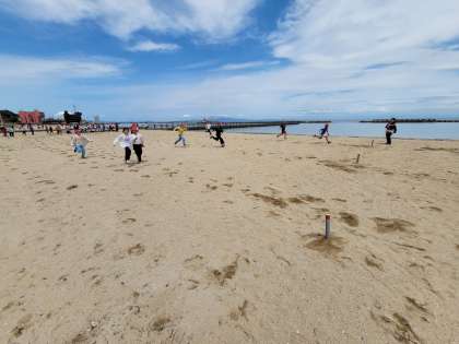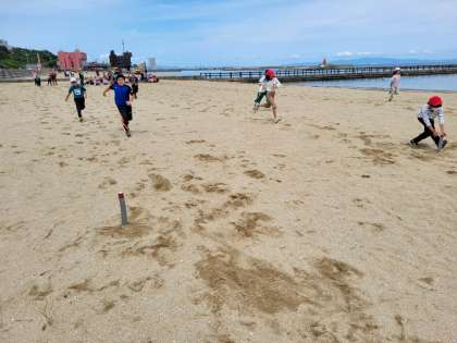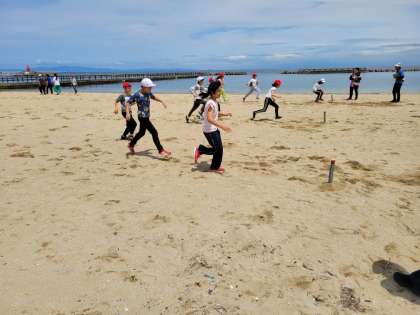 砂浜は走りにくそうですが、みんな頑張ってます。