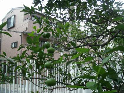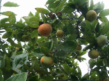校庭の柿の実が色付き始めました。大きな柿の実がたくさんなっています。