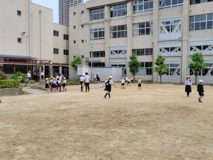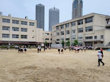 雨が降っていない時には運動場に子どもたちの声が響き渡ります。