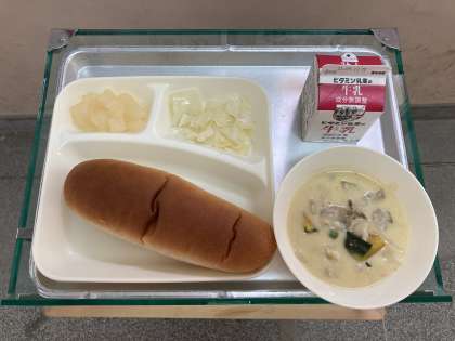 かぼちゃのクリームシチュー・キャベツのゆずドレッシング・