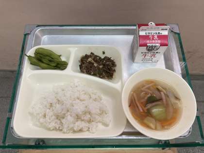 今日の給食では、これにスープとえだまめを組み合わせています。