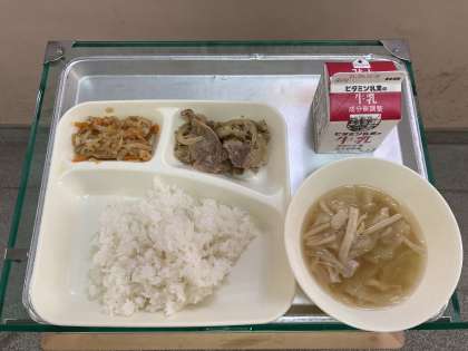 豚肉のごまみそ焼き・すまし汁・切干しだいこんのいため煮・ご飯・牛乳です。