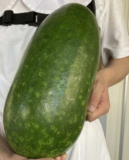 「とうがん」は、ウリ科のつる性一年草で、原産はインドや東南アジアです。夏が旬の野菜で果実を食用とします。果実は大きく、長さ30〜45センチメートルほどの楕円形です。貯蔵性が高く、果実を切らずに風通しの良い冷暗所に置けば、冬まで保存できることから、「冬瓜」という名前が付けられました。