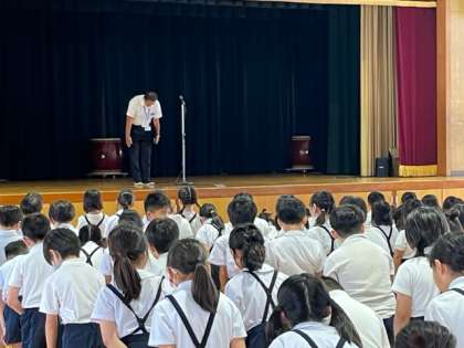 校長先生からは、「元気に学校に登校する様子を見ることができて、とてもうれしく思っています。2学期は、全校遠足や社会見学、学習発表会、作品展などたくさんの行事があります。思い出をたくさん作りましょう。」とお話しがありました。
