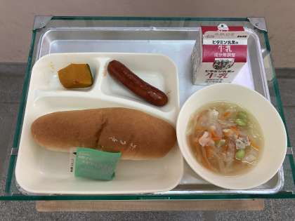 ウインナーのケチャップソース・スープ・焼きかぼちゃ・コッペパン・