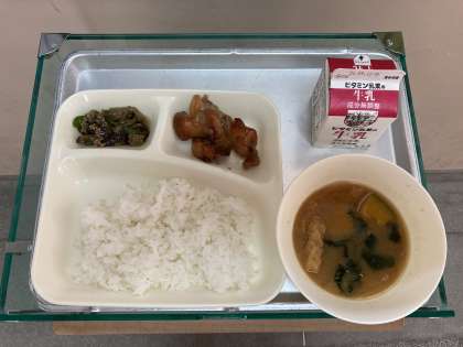 鶏肉のてり焼き・かぼちゃのみそ汁・なすのそぼろいため・ご飯・