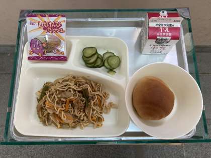 焼きそば・きゅうりのしょうがづけ・いもけんぴフィッシュ・