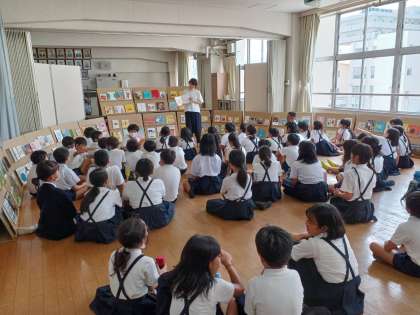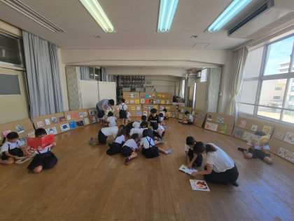 中央図書館の方々に来ていただき、絵本の読み聞かせをしていただきました。
