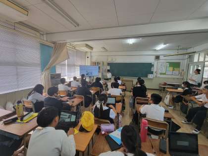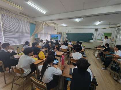 2学期から取り組んできた平和学習のまとめとして、それぞれの学級でスライド形式で発表を行いました。