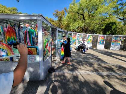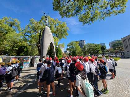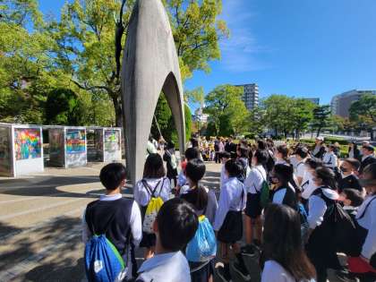 平和記念公園に到着し、慰霊祭を行い、全児童で作成した千羽鶴を奉納しました。