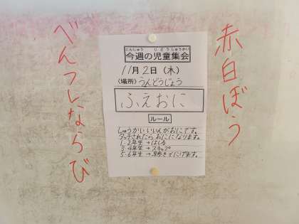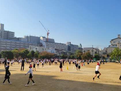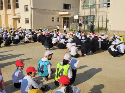 学年に応じて逃げ方を変える工夫をして、たてわり班で遊びました。
