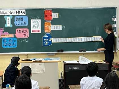 栄養教諭の先生が来てくださり、牛乳のひみつについて授業をしてくださいました。