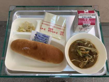 カレーうどん・はくさいのおひたし・スライスチーズ・コッペパン・