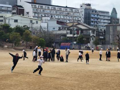 少し肌寒いですが、子どもたちは元気に外で遊んでいます。