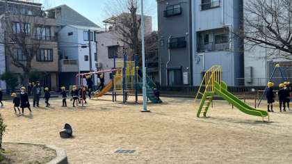 1年生は学校の近くにある弁天公園へ「公園たんけん」に行きました。