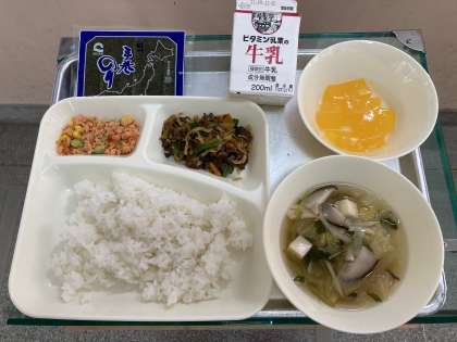 すまし汁・ダイスゼリー(みかん)・牛乳です。