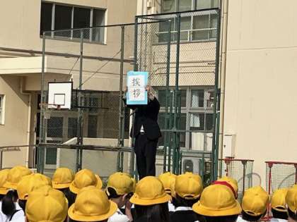 校長先生からは、「挨拶」についてのお話がありました。「挨」には(心をひらく)、「拶」には(心に近づく)という意味があるそうです。