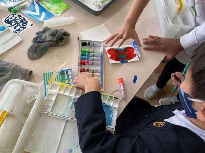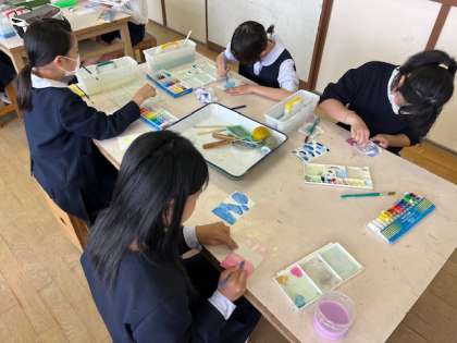 にじみやぼかし、点描などいろんな技法を用いて表現することができました。