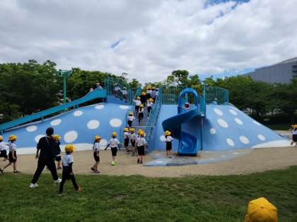 ?大きな遊具で仲良く遊んでいます。