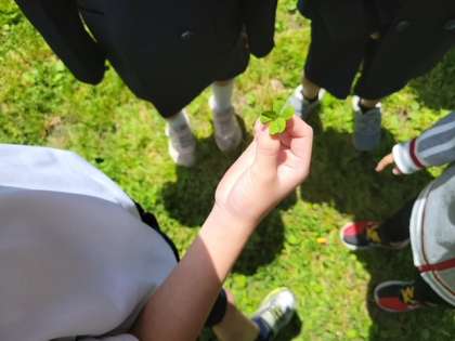 お弁当を食べた人から、四葉のクローバーを探しています。