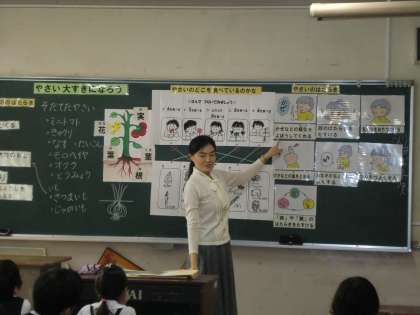今日は、2年生の栄養指導「やさい、大すきになろう」がありました。