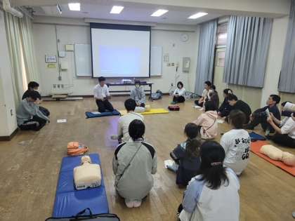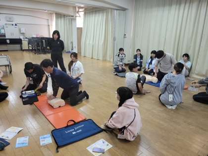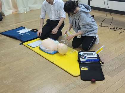 人形を使った胸骨圧迫やAEDの使い方を学びました。