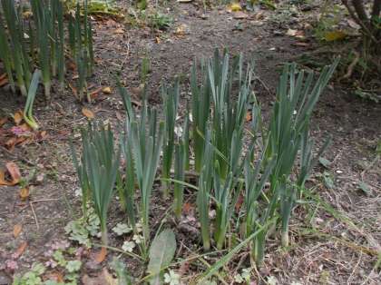 スイセンの芽です。冬の花です。よい香りのする花が咲きます。