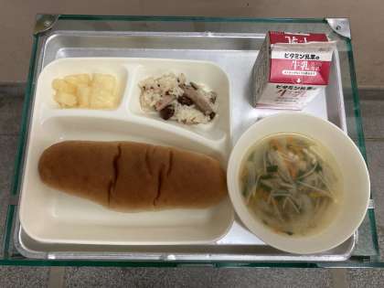 金時豆の中華おこわ・中華スープ・パインアップル(カット缶)・