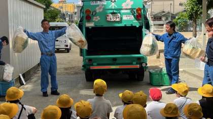 パッカー車の見学では車の仕組みや、収集するゴミによって音楽を変えてる事など教えて頂きました。