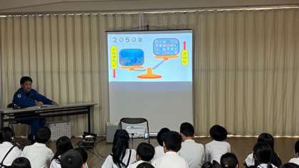 次の時間は、海にあるプラごみがこのまま進むと2050年には魚より多くなってしまう事など環境について教えて頂きました。