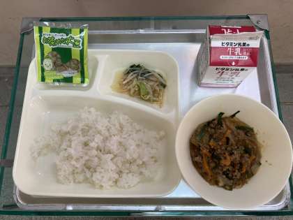 マーボーはるさめ・チンゲンサイともやしの甘酢あえ・まっ茶大豆・