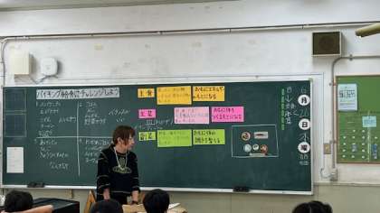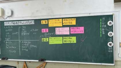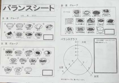 今日は栄養教諭の方に来て頂き栄養指導をして頂きました。好きな食材を選んだ後、選んだ食材が主食、主菜、副菜どのグループに入っているか確認したり、バランスよく栄養が取れているか調べたりしていました。