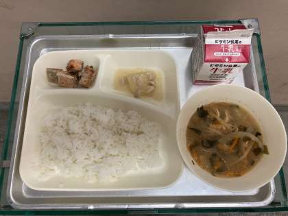 さけのしょうゆ風味焼き・みそ汁・とうがんの煮もの・ご飯・牛乳です。