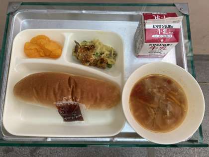 カレーマカロニグラタン・トマトスープ・みかん(缶)・コッペパン・