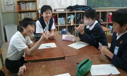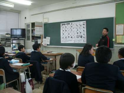 5時間目、市岡中学校の先生方が弁天小学校に来てくださいました。