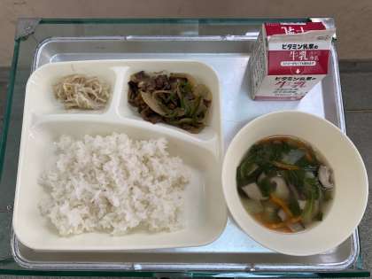 プルコギ・トック・もやしのナムル・ご飯・牛乳です。