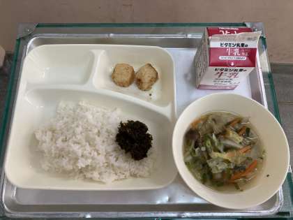 いかてんぷら・五目汁・のりのつくだ煮・ご飯・牛乳です。