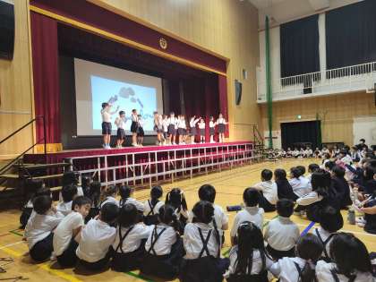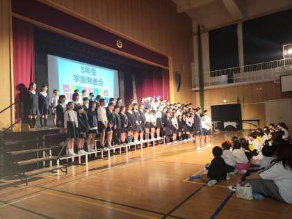 今日は、土曜授業で学習発表会です。
