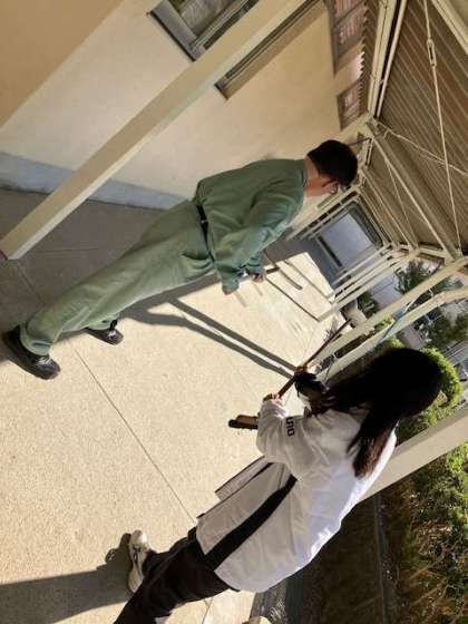 放送を聞いた後、安全確保のために教室に鍵をかけ、バリケードをし、見えにくいところに集まります。