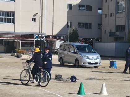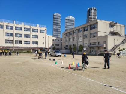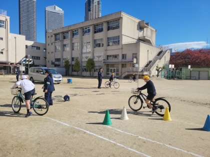 3.4年生は自転車を使って交差点や信号の渡り方を教えてもらっています。