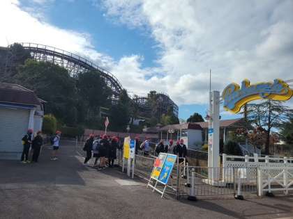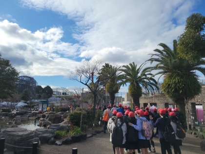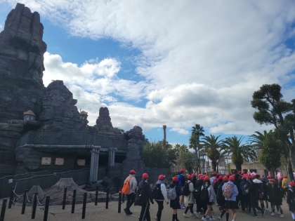 各グループにわかれて、それぞれの乗り物に向かっています。